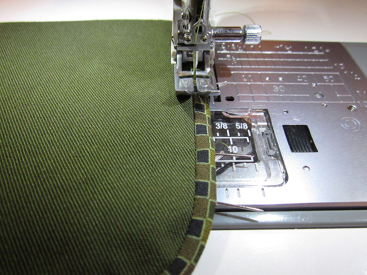- Flip the flap back over so the exterior is facing up. Edgestitch the binding in place through all the layers. You are stitching just within the binding strip.