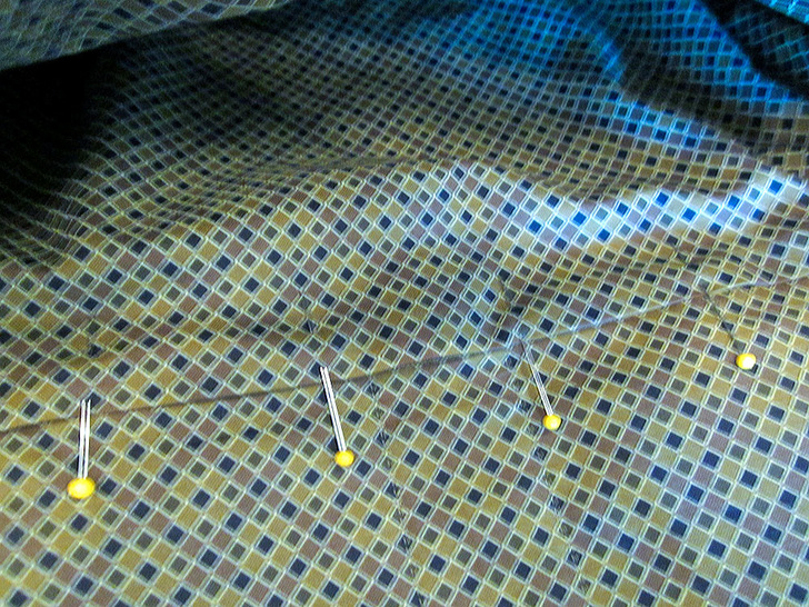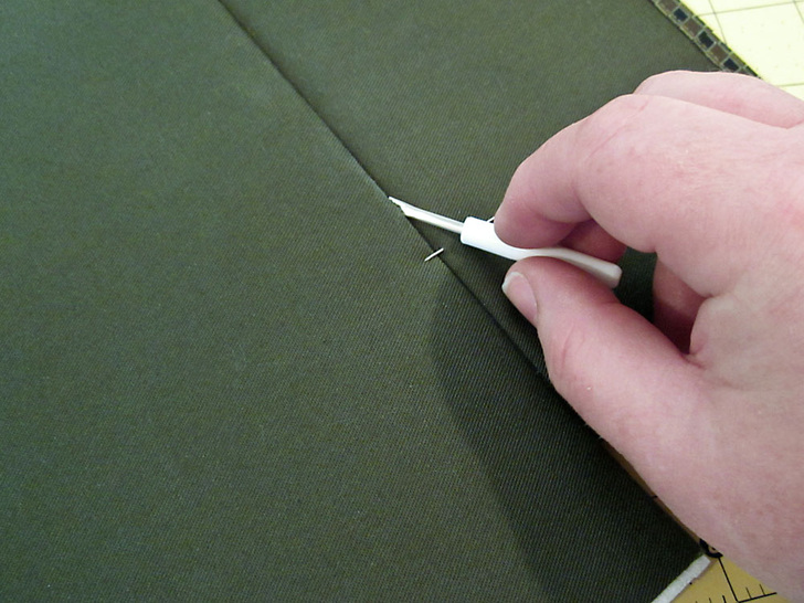 - Using a seam ripper, open up the seam 1″, starting at each pin point and working toward the center. This will allow for insertion of the handle in a later step.