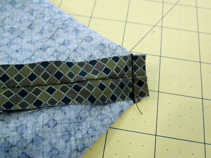 - Using a ½” seam allowance, stitch across the flap through all the layers. In other words, your seam should start and stop at the outside bound edges of the flap.