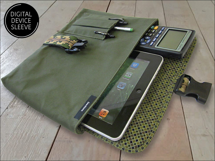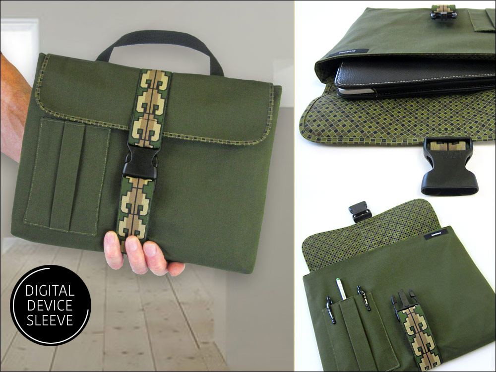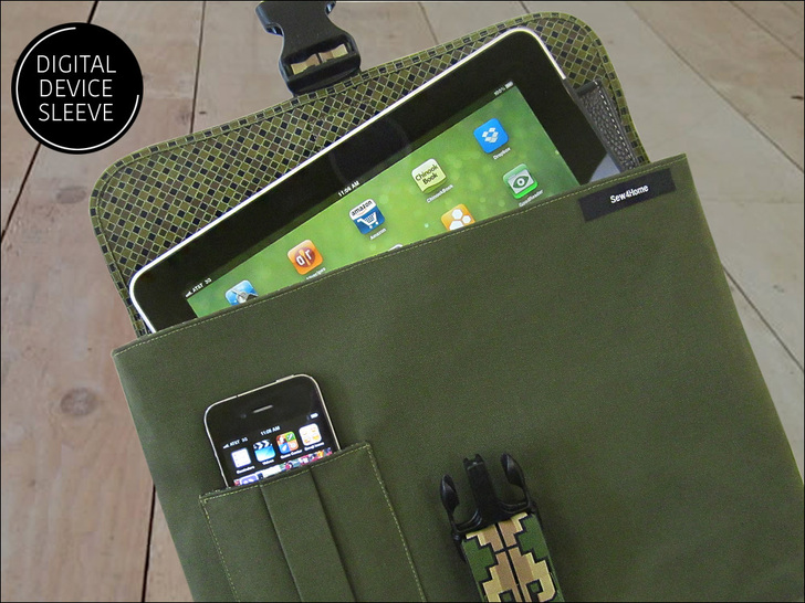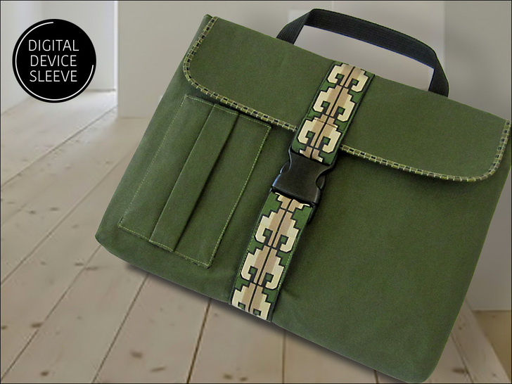 We paired a great solid twill with a fantastic patterned cotton for the lining and binding, and the wraparound strap closure is a wide, decorative ribbon backed with polyester webbing for added stability. The finished look of the device sleeve is ultra-professional, as if you just grabbed it off the shelf at Eddie Bauer®, but thanks to the signature S4H step-by-step directions, you can make it yourself in your favorite fabrics.