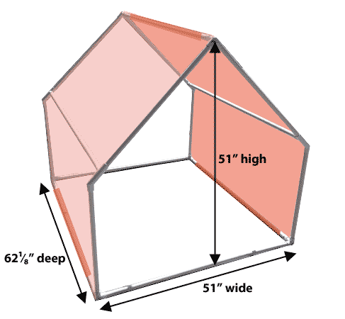 The tent finishes at 51″ wide x 62⅛” deep x 51″ high at the apex.