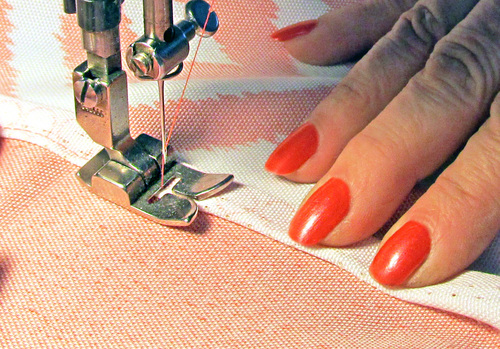 - Pin in place and then stitch in place through all the layers, keeping your seam line as close as possible to the folded edge of the casing.