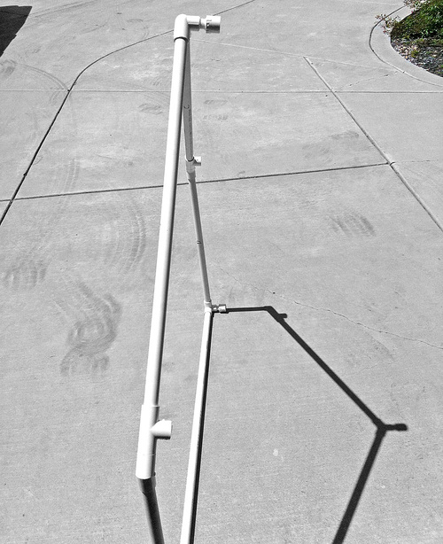 All the following cuts (A-E) are ¾” Schedule 40 Pipe – a common PVC pipe you can find at just about any home center. The joining parts are also common plastic plumbing parts. We give you the SKU numbers for all the elements we purchased at Home Depot. You can cut the PVC pipe yourself with a special cutting tool or you can ask the home center staff to cut it for you into the specified lengths. This was a free service at Home Depot. They also mentioned you could call in the cuts (with SKU numbers) and then come in to pick up the finished order. Check with your local retail outlets for options and services.