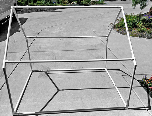 - The assembly of the PVC parts for the tent is very simple. Remember, you are not gluing anything, so anytime you want to retry a fitting, just pull the pieces apart and go again.