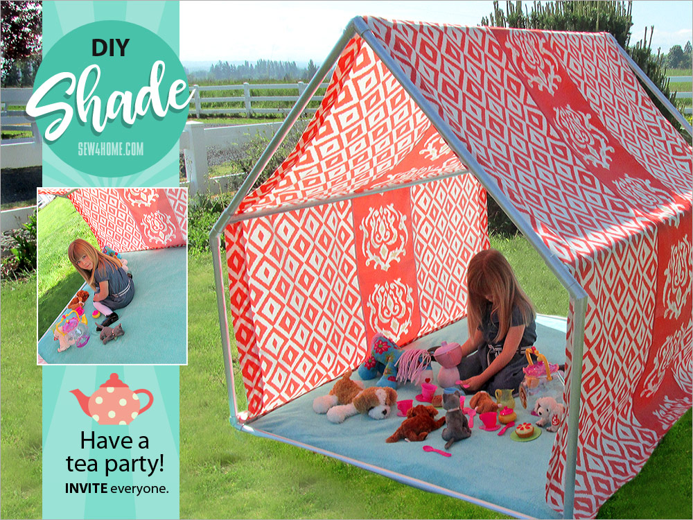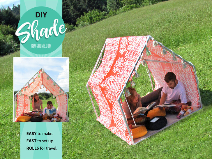 When things turn hot-hot-hot in the great outdoors, it’s “bring-your-own-shade” kind of weather. Our fun portable shade tent fits the bill. It’s perfect as a children’s outdoor playhouse as well as a comfy lounge cabana for “big kids” to relax, read, and doze. We show you how to create the easy-to-assemble PVC frame as well as the slip-on, single layer fabric covering. This project was created a few seasons back, but quickly rose to the tip-top of our Most Popular lists across several social media outlets, and continues to maintain its position there. We can see the reasons: it’s easy to make, fast to set-up, and rolls-up for travel or to store, which is why we love to roll it out again when the summer sun starts to shine.