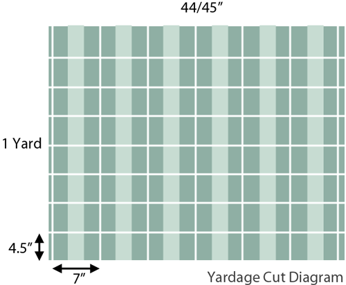 - Across the width (the 45″ side), measure, mark and cut six 7″ strips. Avoid the selvedge, which means you’ll start your measurement just past one selvedge and end approximately 2½” from the opposite selvedge. The strips should run the full 36″ length.