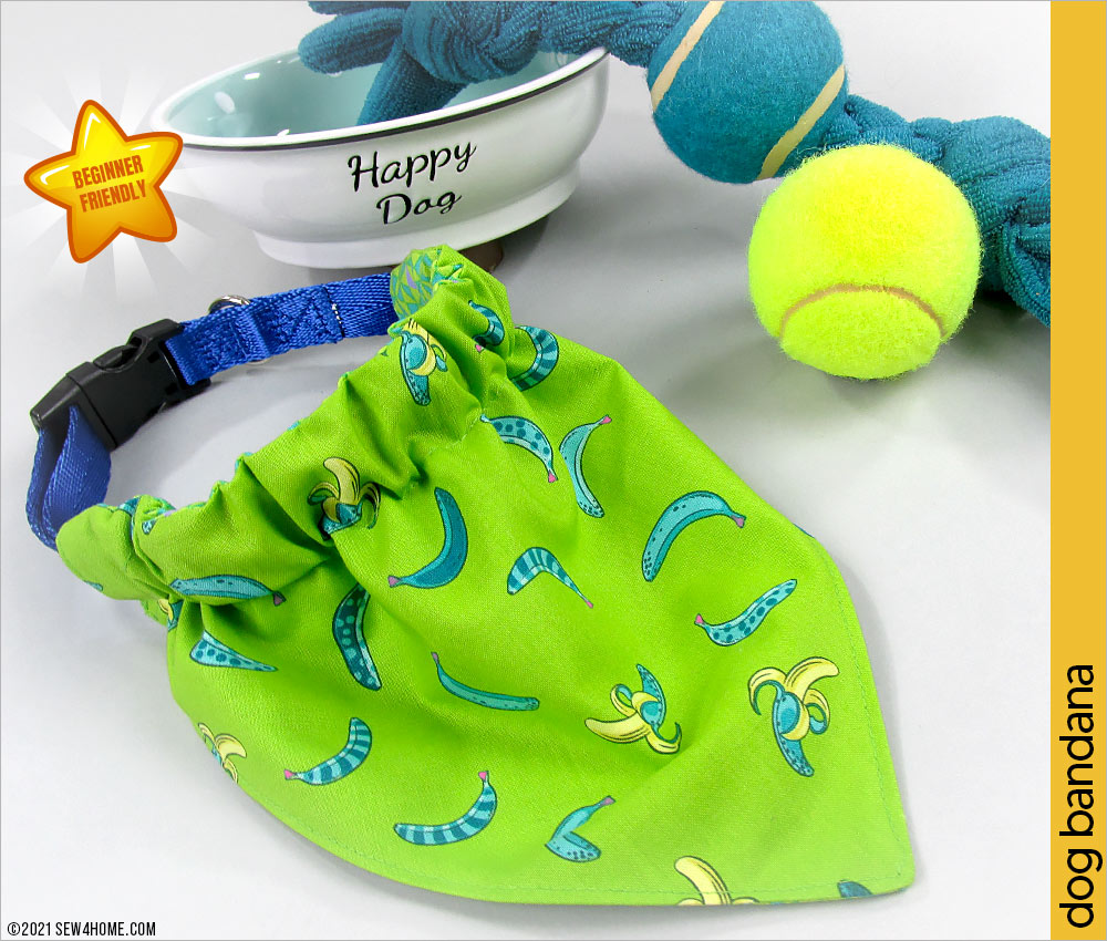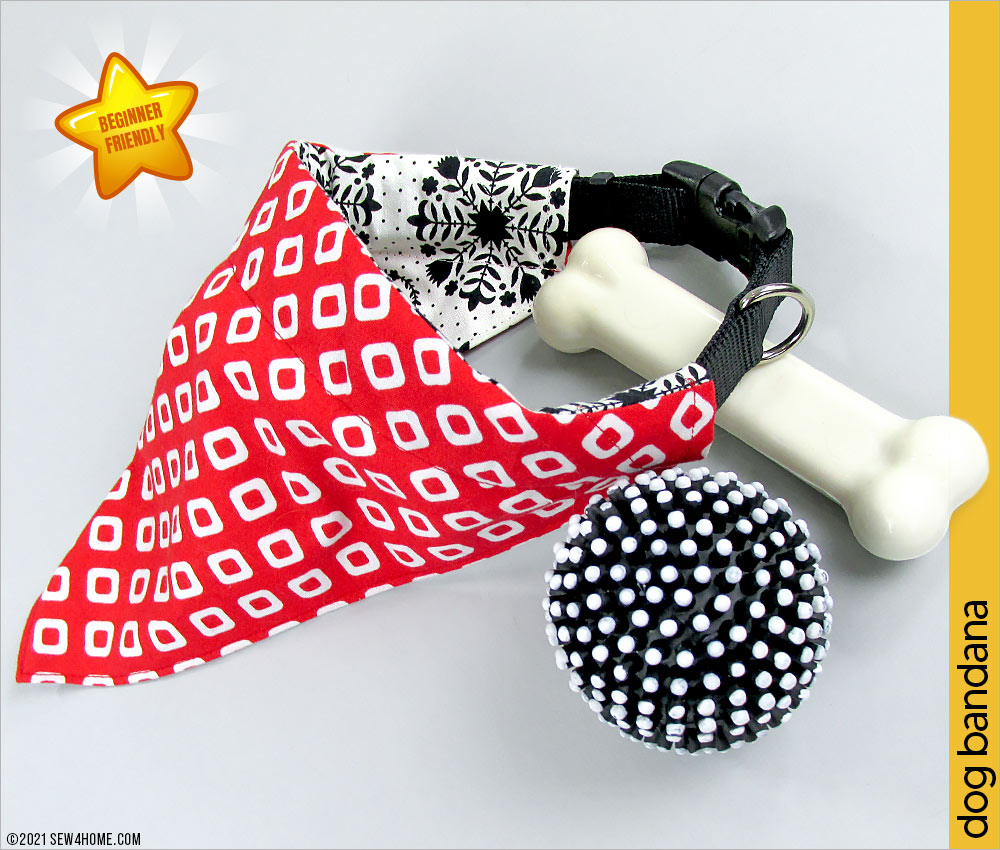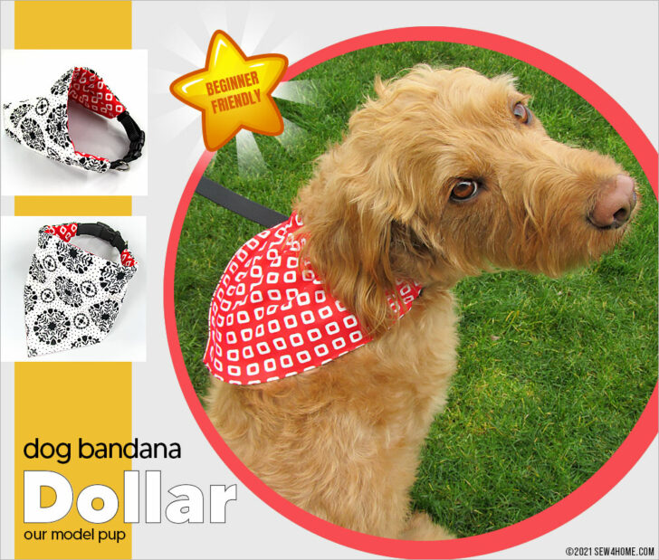 Do you have a posh pup or a dapper dog? Then she or he certainly deserves a spiffy new wardrobe, including one of our fun dog bandanas. We’ve come up with a super fast and easy option that has an adjustable casing so you can slip this fashion accessory right onto your dog’s collar. Our free downloadable pattern has Small, Medium, and Large sizes.