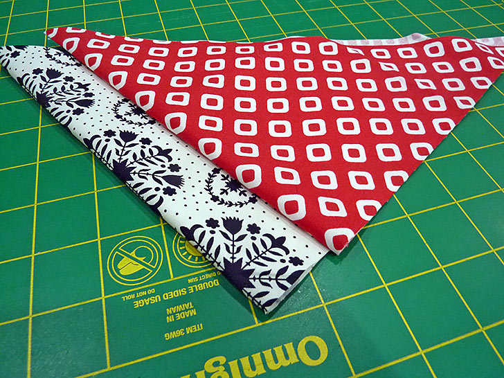 NOTE: Fussy cutting isn’t mandatory, especially if you have a random motif. However, if you have a bolder motif, such as the medallion print in our black/white/red sample, a fussy cut to center the motif is a nice touch… your pup will be impressed.