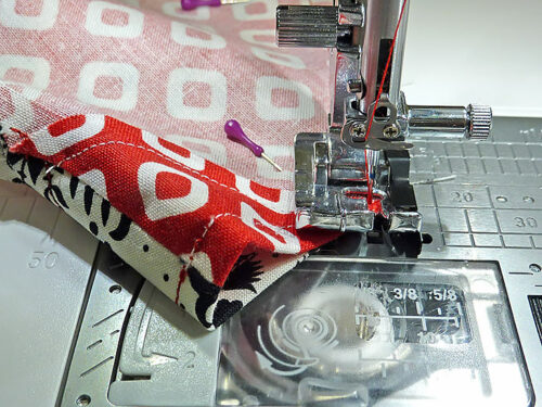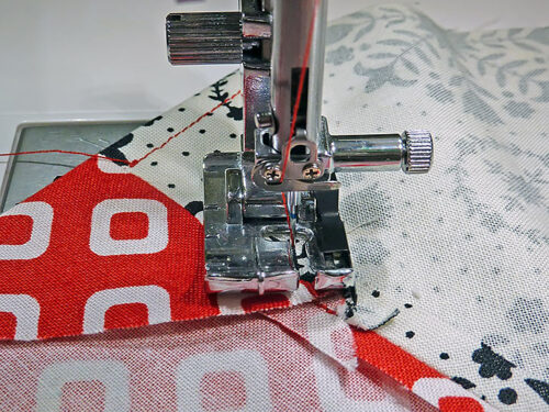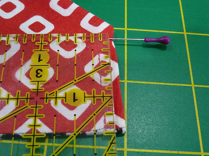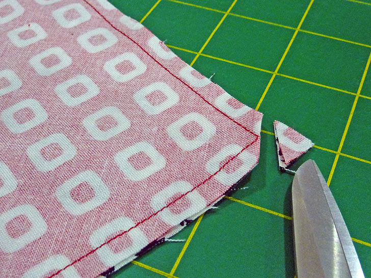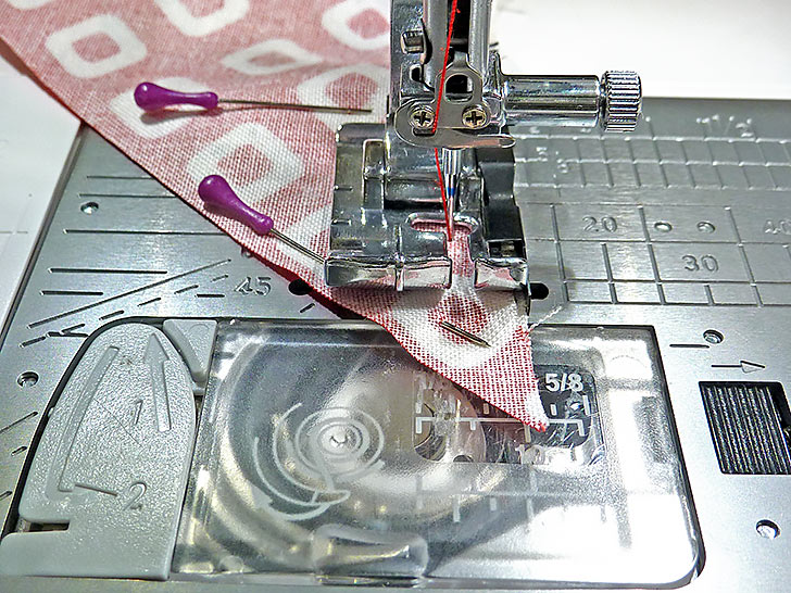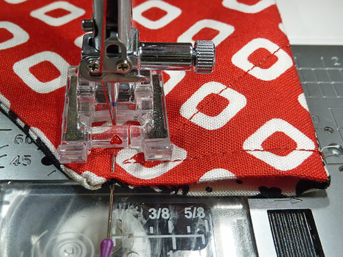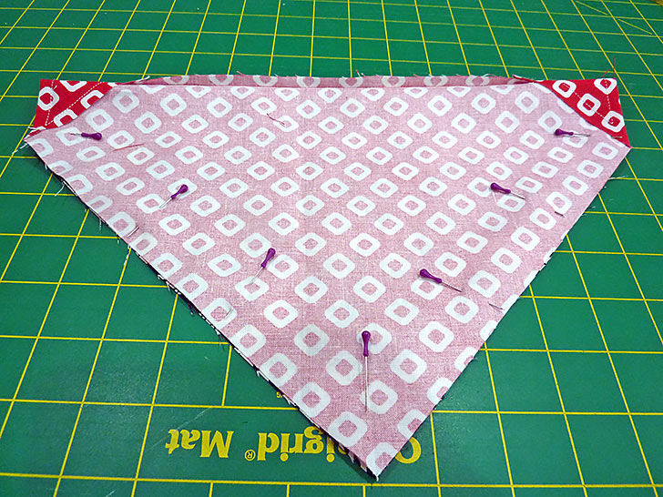 - Edgestitch along each diagonal side of the finished triangle. This helps stabilize the edge and keep the two layers from shifting.