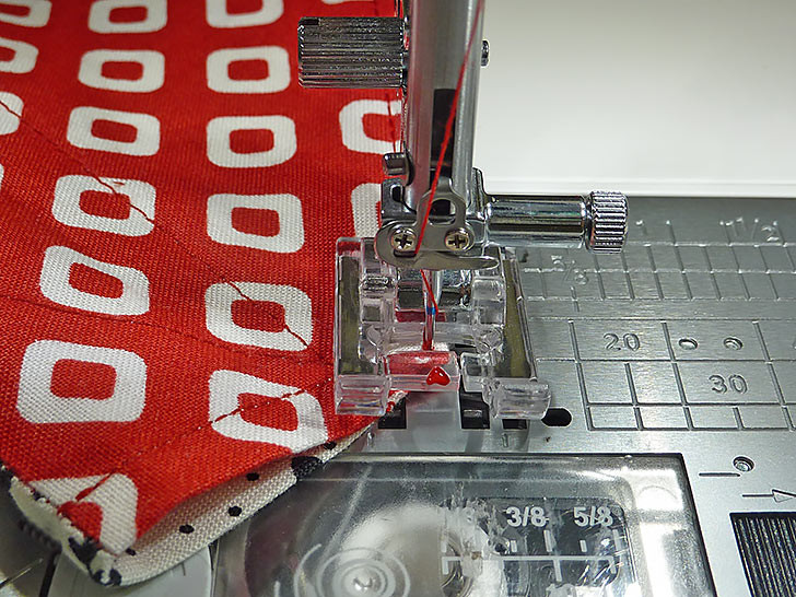 - Stitch back up and stop just below the casing on the opposite side. As shown in the photo, the casing should be completely open on each side.
