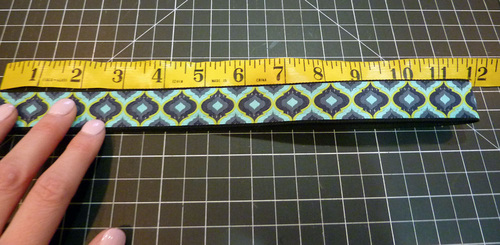 - Fold the main bow strip in half, right sides together, and pin together the raw ends.
