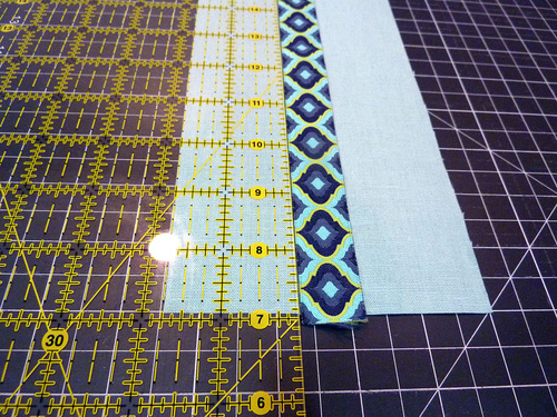 - From a coordinating fabric scrap, cut ONE 10″ x 4½” rectangle and ONE 2″ x 2½” rectangle.