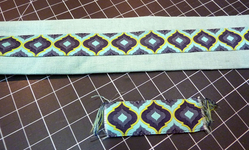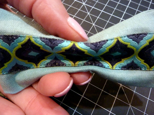 - Edgestitch the ribbon in place along both sides.