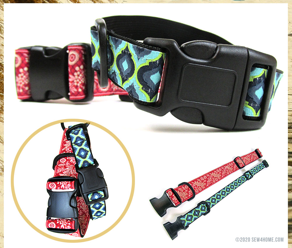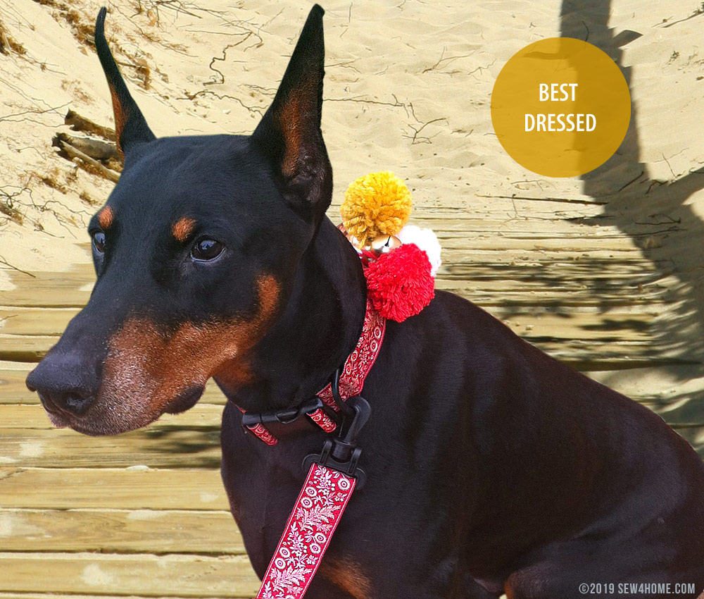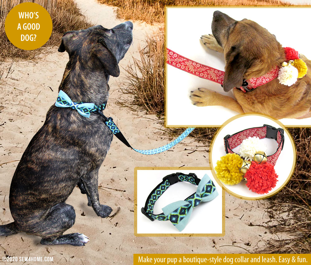 Take your pup walking style this year! Beautiful ribbon, hardware, webbing, a couple of hours; and you can make your very own boutique-style dog collar and leash. This is such a fun and easy project, you’ll be offering to make them for all your canine friends. We chose Renaissance Ribbons for the ultra-stylish ribbon on both our sets. We even added a couple cute embellishments to each of our samples. There’s a slip-on bow tie for the dapper dog, and a set of poms and jingle bells for the party animal.