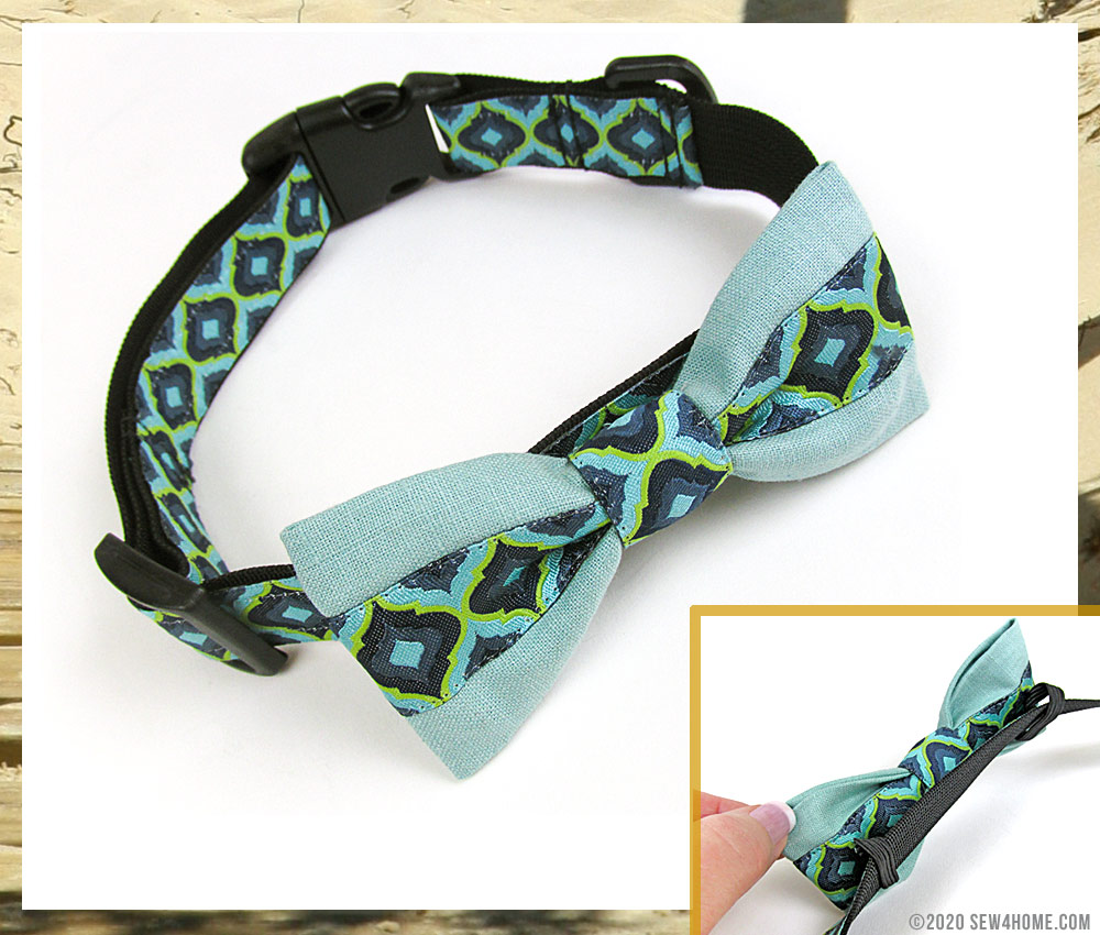 - Thread the collar through the elastic loops so the bow sits at the back of the collar.