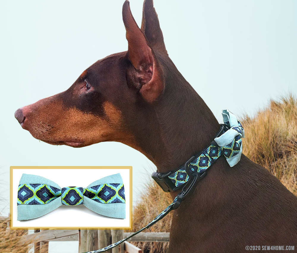 - Fabric scrap in a coordinating color for the bow-tie – you need just a 4½” x 10″ cut; we used a scrap of turquoise cotton