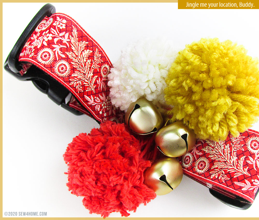1½” collar - Yarn for 1-3 poms; we used natural, gold and red polyester yarn – the amount of yard required will be based on the thickness of the yarn and the fluffiness you want to achieve, so we can’t give you an exact amount.