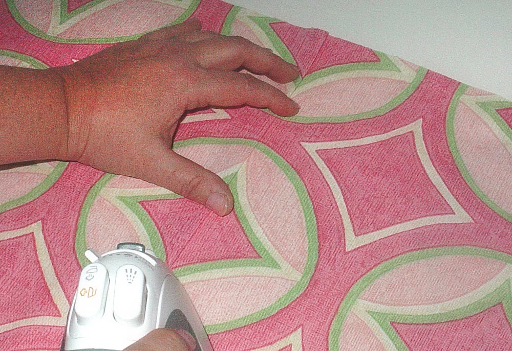 - Arrange the fabric pieces so they are both right side up. Working from the top to the bottom, lap the pressed seam allowance (the folded and fused edge) over the unpressed one. Match the motifs exactly.