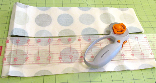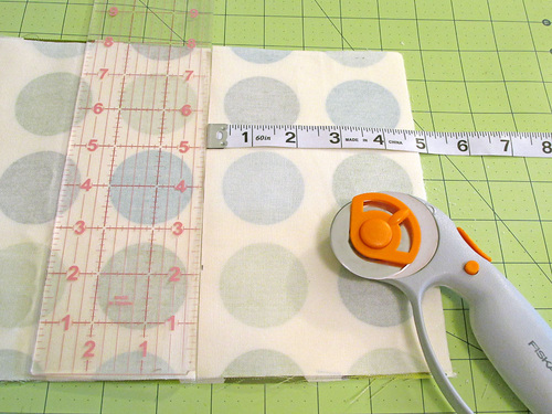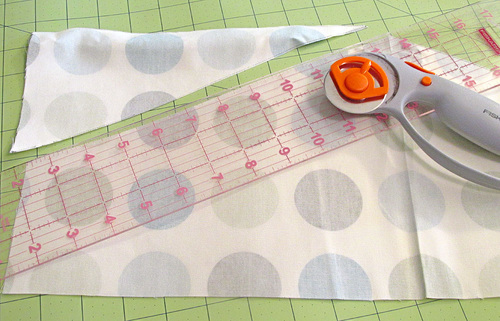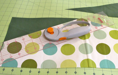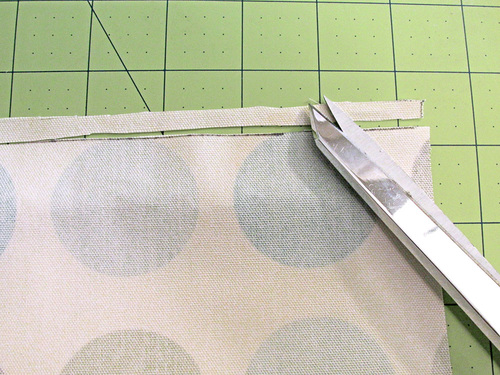 - Along the top edge, slice off ¼”. This allows for the piping while still maintaining your perfect fussy cut.