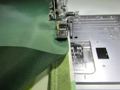 - Machine baste the layers together along all four sides, keeping the basting within the seam allowance; a ⅜” seam allowance is a good option.