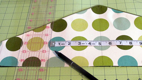 - Find the exact center along the trimmed top edge. Mark this center point. Measure 4¾” down from the top corner along each side. Mark these two side points.