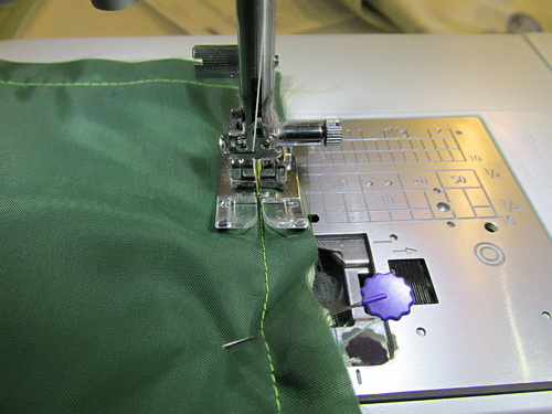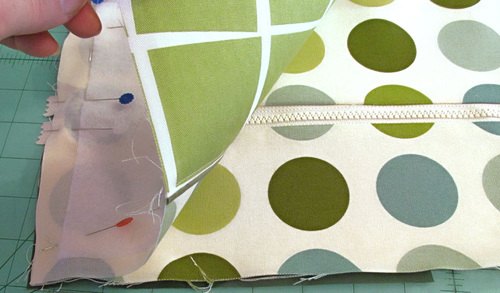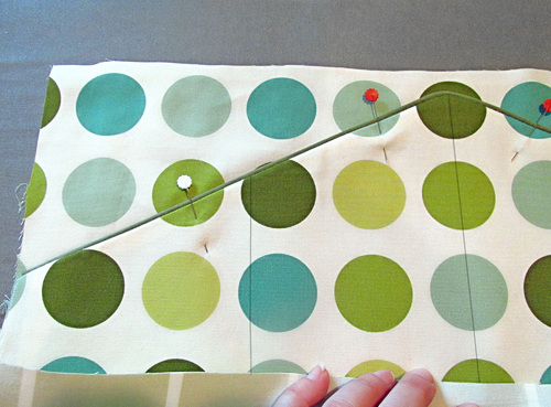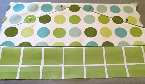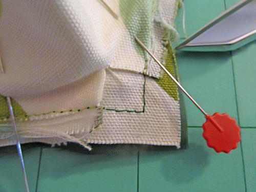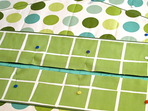 - With the front panel complete, leave a few pins in place to insure the pocket panel is laying perfectly flat.