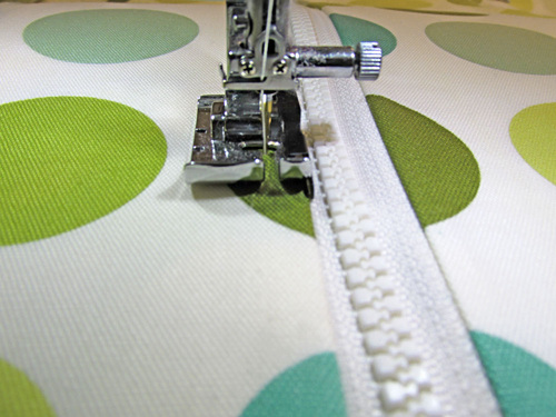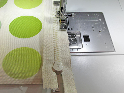 - Open and close the zipper to allow the presser foot to move around the zipper pull.