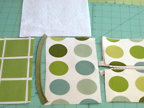 - Find the four 28½” x 4” zipper panel rectangles and the two 27½” x 3” interfacing rectangles.