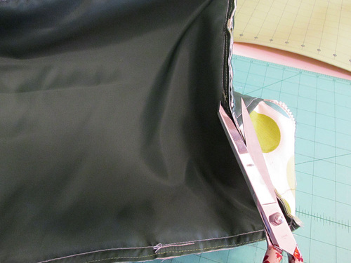 Using the trimmed exterior pocket as a pattern, cut a matching angled piece for the pocket lining.