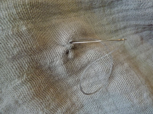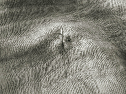 - Thread a hand sewing, tapestry-type needle with thread to match the fabric; use a double strand of thread.