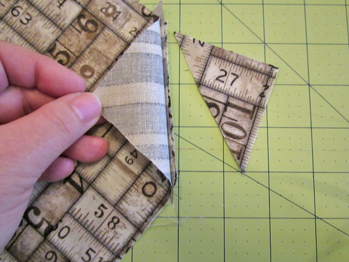- Find the four 8″ x 8″ pocket squares and the four triangle corners.