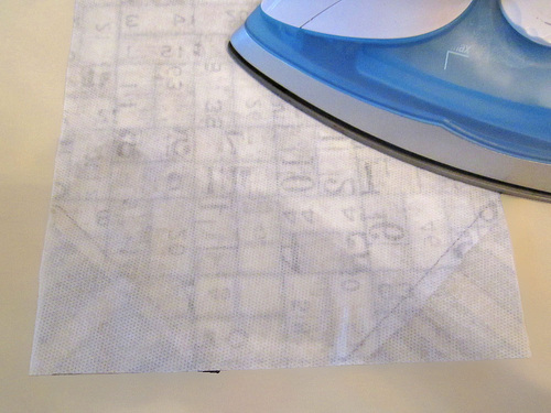 - Center the fusible fleece on the wrong side of each fabric panel. Following manufacturer’s instructions, fuse the fleece in place.