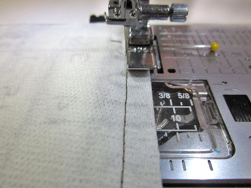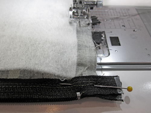 - Using a ¼” seam, stitch across the top of the panel through all the layers. You should be stitching close to the zipper teeth.