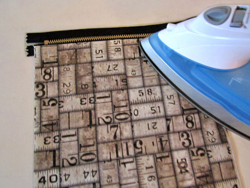 - Fold the lining and exterior wrong sides together, so the zipper stands straight up, and press.