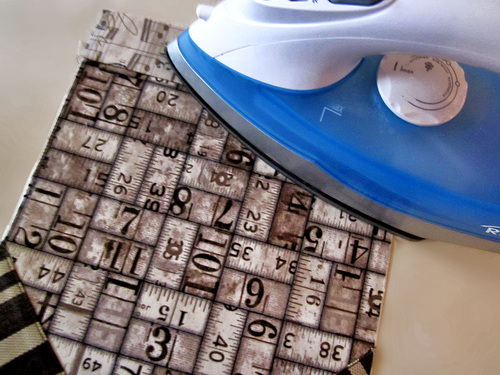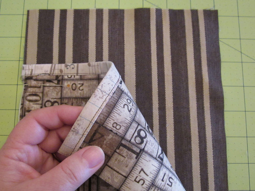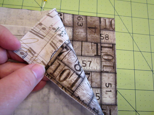 - Edgestitch each corner in place, running the seam just along the long folded edge.