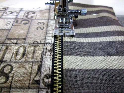 NOTE: We stayed with our regular presser foot for this seam, but if you could also switch back to your Zipper foot if you are worried about getting close enough to the zipper teeth when sewing through all the layers.