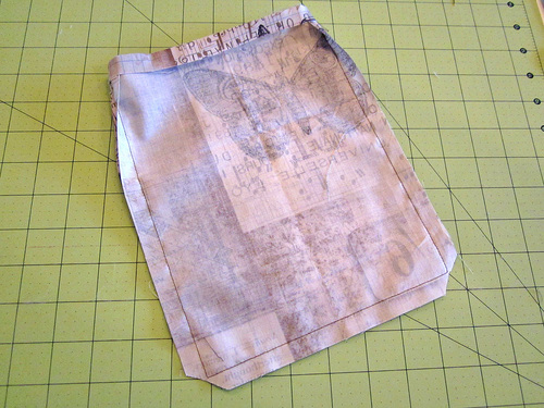 - Using a ½” seam allowance, stitch along both sides and across the bottom, pivoting at the corners. Clip the corners at a diagonal.