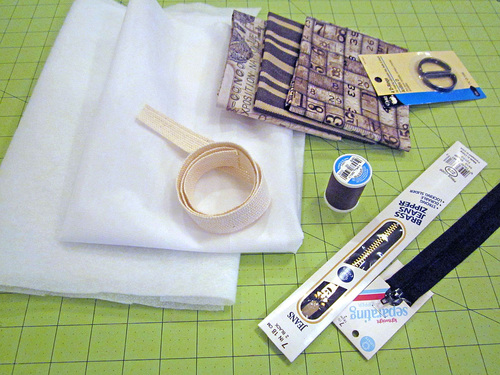 - ONE 7″ metal zipper; we used a Coats 7″ Brass Jeans Zipper in Black