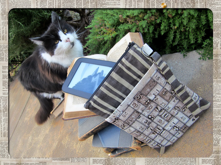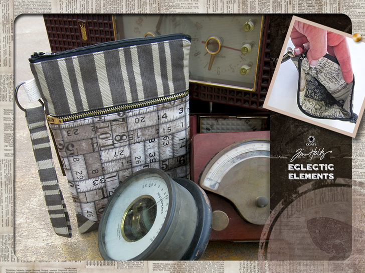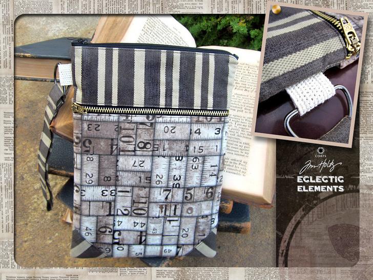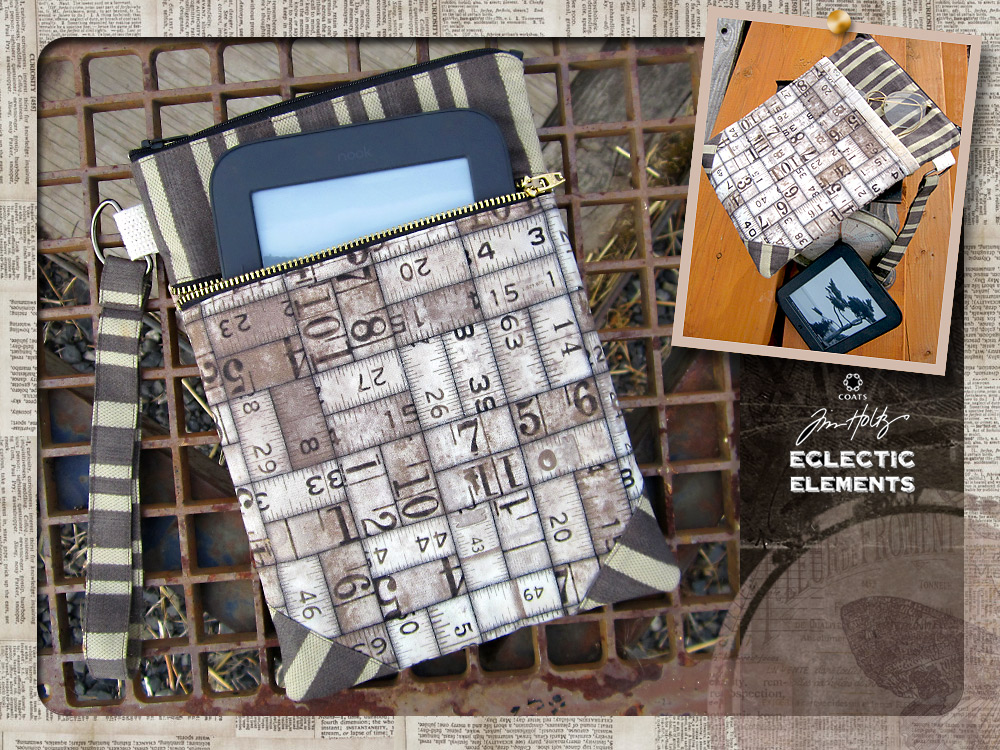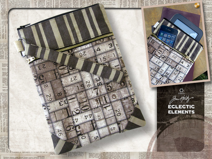 We love this idea of concealing cutting-edge digital devices inside a vintage fabric wrapper. Our Double Zipper Device Sleeve combines three nostalgic prints, originally from the wonderful Eclectic Elements series by Tim Holtz for FreeSpirit Fabrics.