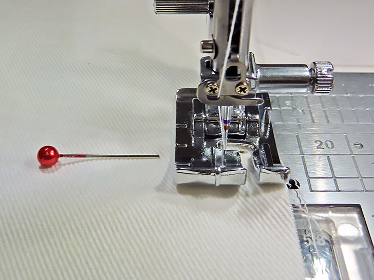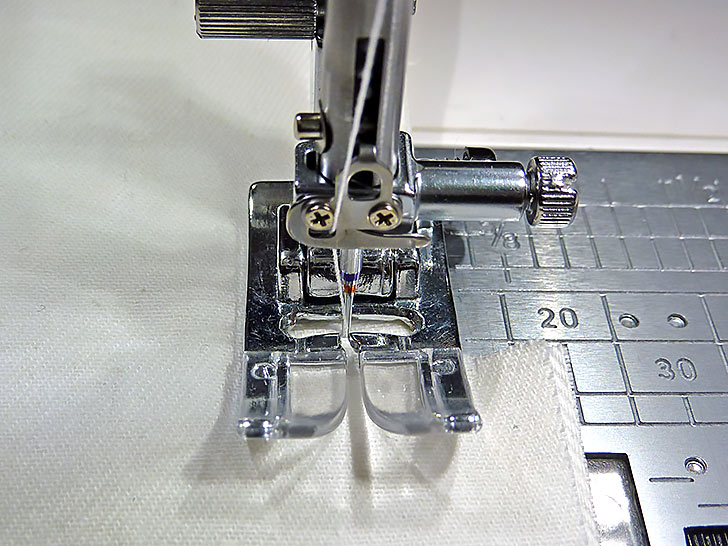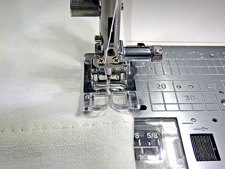 - Re-thread the machine with thread to best match the main panel fabric in the top and bobbin. Re-set for a standard stitch length.
