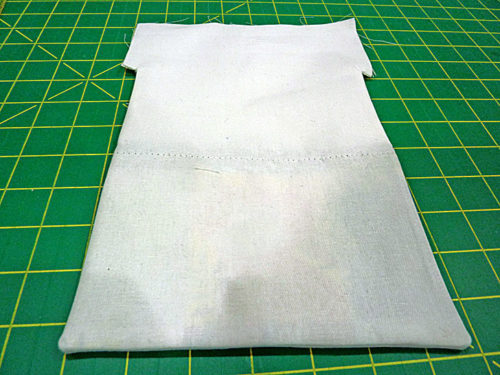 - Turn the bag wrong side out, so your panels are now the more traditional right sides together. Use a long, blunt tool to gently push out the bottom corners so they are as sharp and square as possible. A knitting needle, chopstick or point turner works well for this.