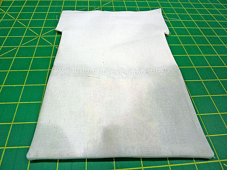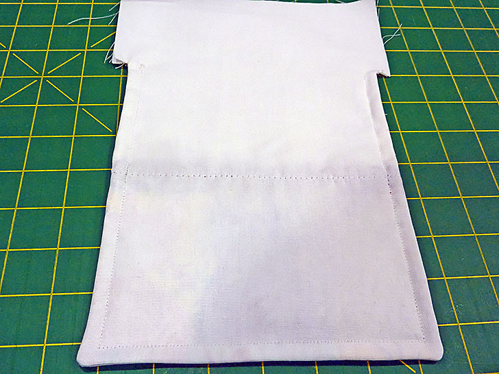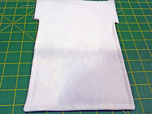 - Fold down the top of the front and back again until the folded edges meet at the top of the sewn side seams.