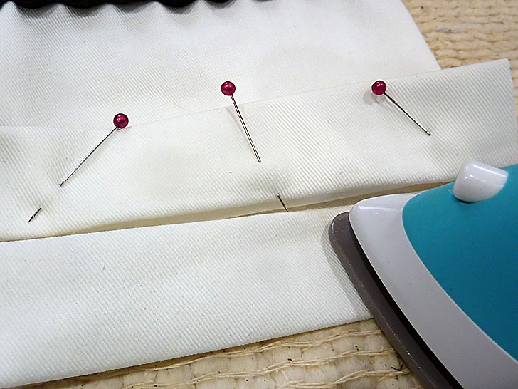 - Fold down one side and pin, then match the fold on the remaining side.