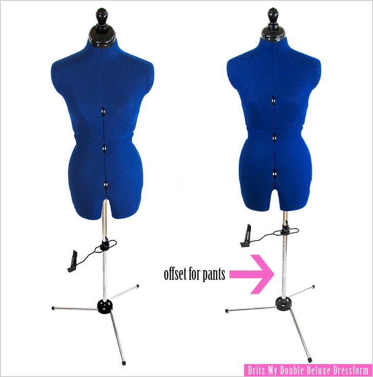 The Dritz® My Double Deluxe Dressform has all the features of the standard My Double Dressform plus the added benefit of a second insertion point for the main pole that allows the form to be perfectly centered for gowns, dresses, skirts, etc., as well as to stand off-set to allow for fitting pants.