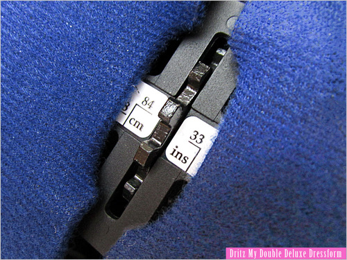 Finally, when the pole is in the center position, there is a Back Waist Length Adjuster knob underneath – near the base of the body. You simply reach up under to loosen this knob, then from the outside of the form, gently pull down the hip section until the back waist length matches your own measurements. Re-tighten the knob to set the position.