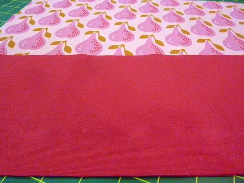 - ½ yard of 44″+ wide quilting weight cotton in a subtle coordinating solid for the lining – we matched the background color of the pear print; we originally used a pale pink standard quilting cotton