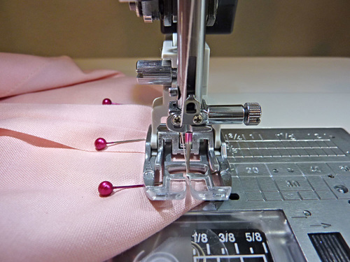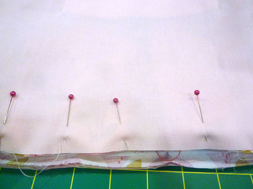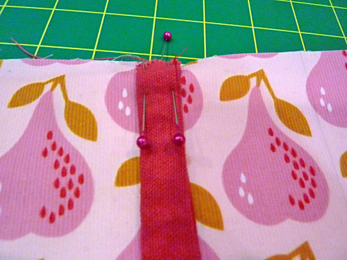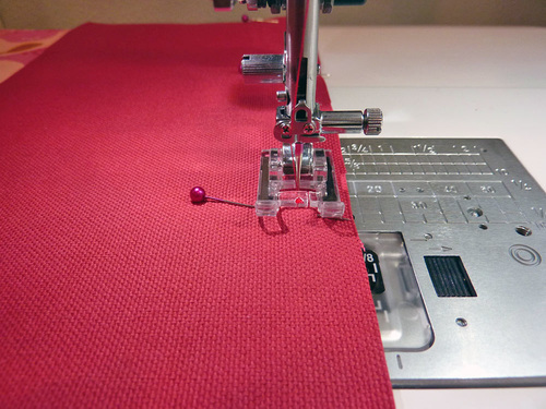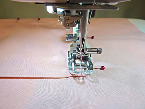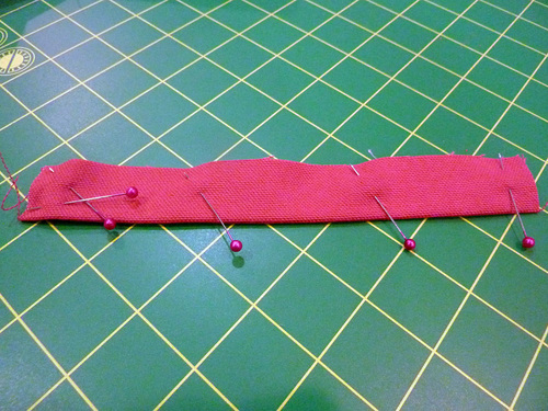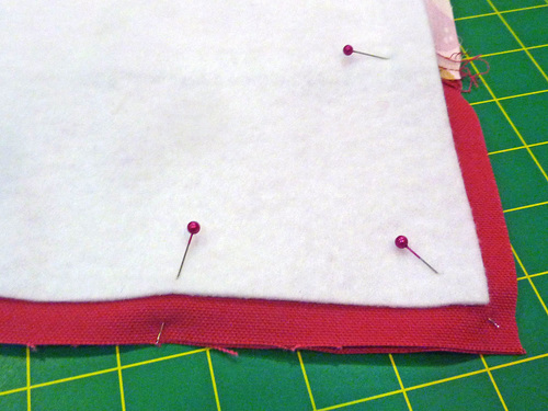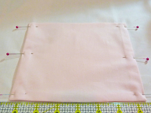 - Pin in place along the sides and across the bottom, leaving a 2-3” opening along the bottom for turning.
