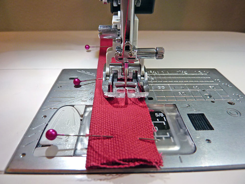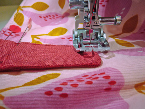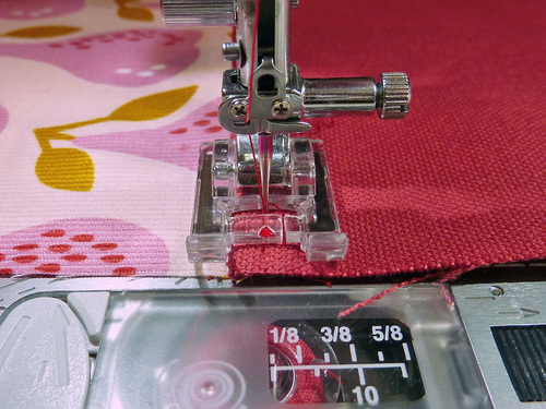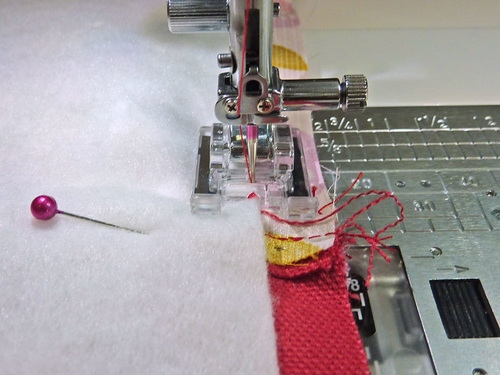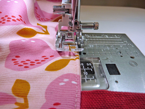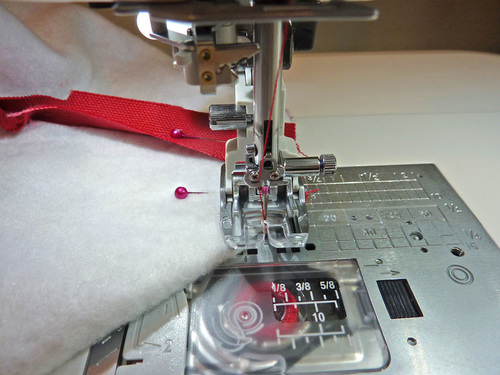 - If necessary, re-thread the machine with thread to best match the main panel fabric in the top and bobbin. Lengthen the stitch. Edgestitch all around the top.