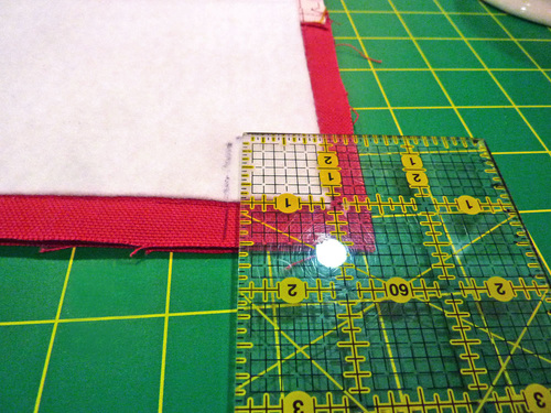 - With the sewn exterior still wrong side out, create 3″ box corners, which means your “box” will be half that size or 1½”. Measure a box at each corner.