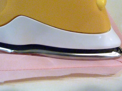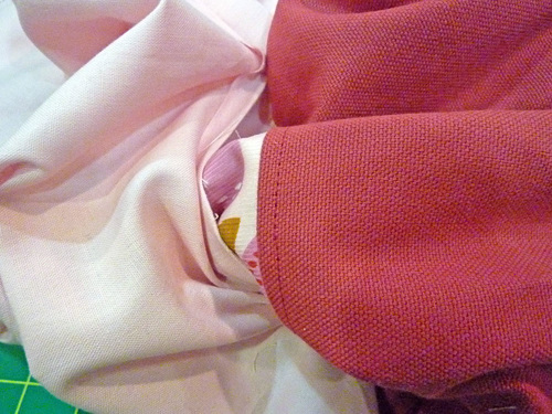 - Press the pocket flat, pressing in the raw edges of the seam allowance at the opening so they are flush with the sewn seam.